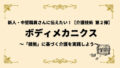 前回のブログで紹介したボディメカニクスも、この「移動・移乗」のなかで効果を発揮します。例えば「重心を近づける」「大きな筋肉を使う」といった基本動作は、利用者の安全性と介助者の体の守り方、どちらにも直結しています。